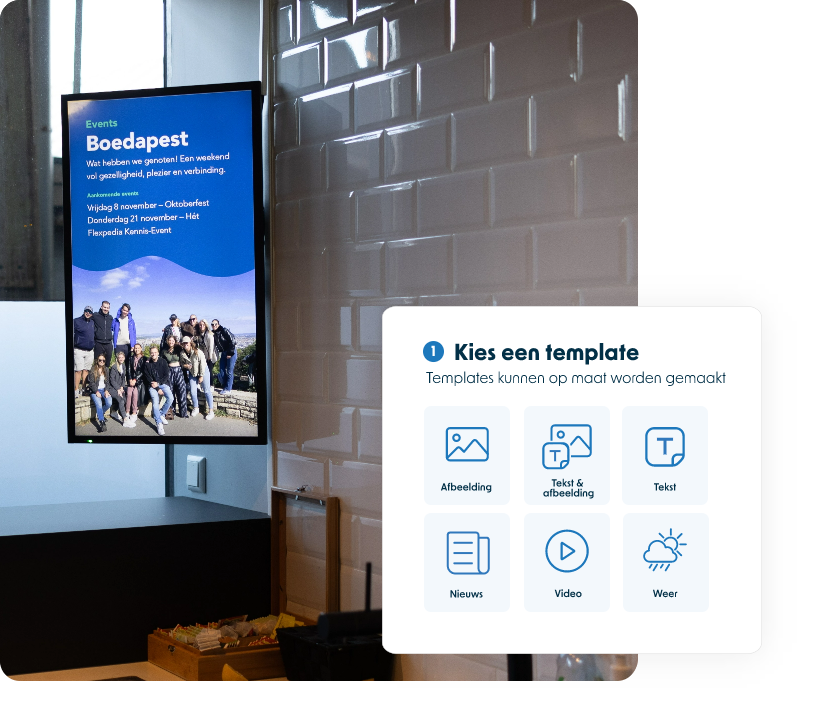 Binnen 5 minuten live. Sleep je content naar binnen en het staat strak op elk scherm.